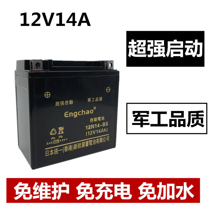 摩托车电瓶12V14Ah三轮车免维护6MF14蓄电池隆鑫福田五星干电池