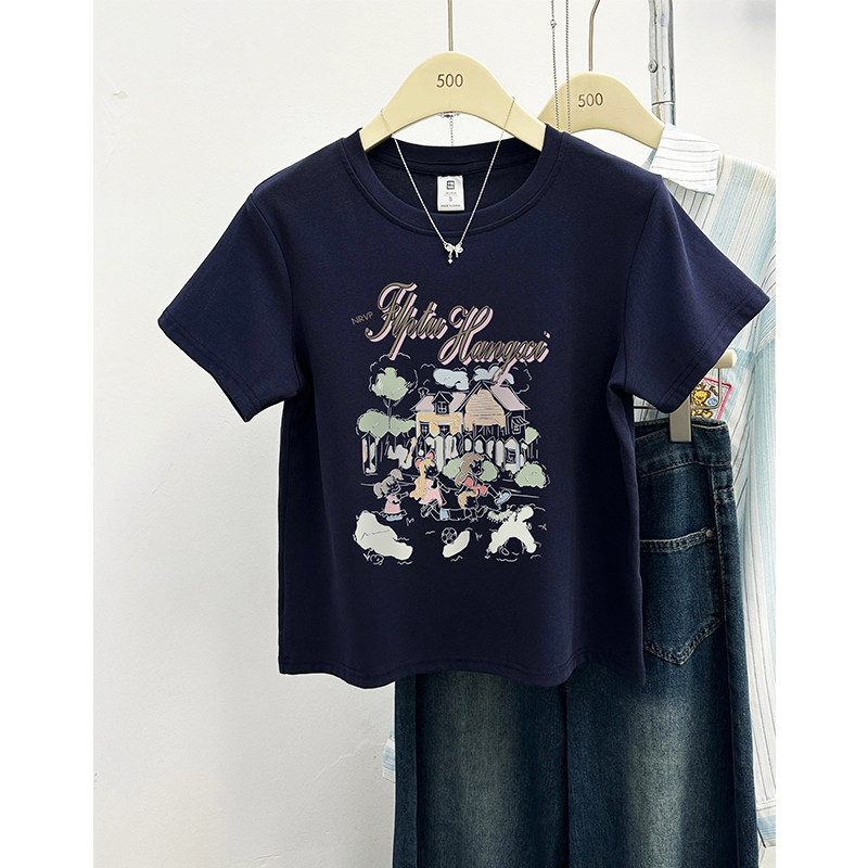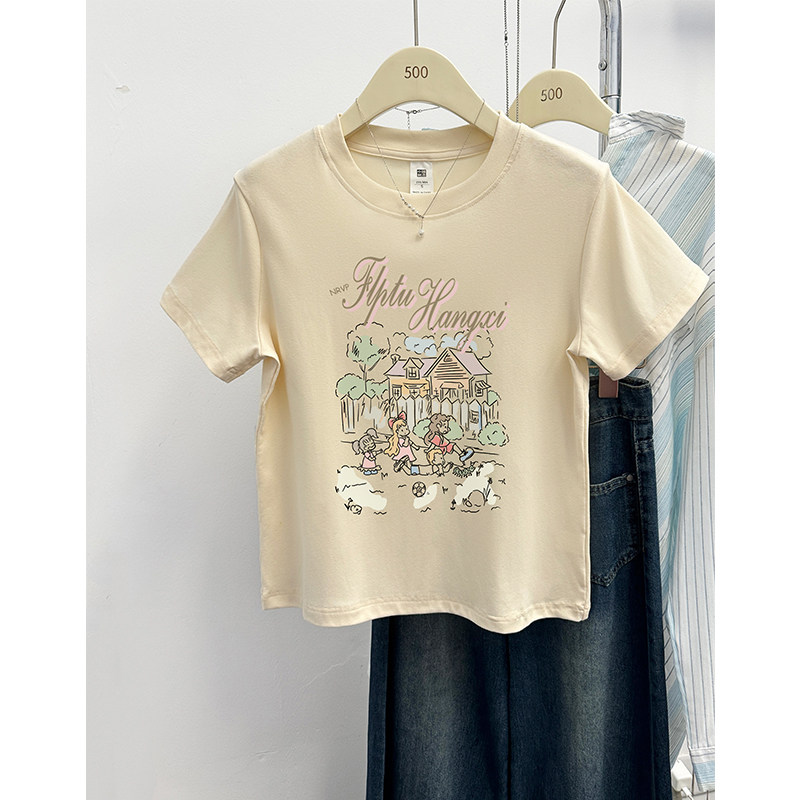 显瘦时尚 特大码 洋气印花上衣ins夏 T恤女装 200斤胖MM小众正肩短袖