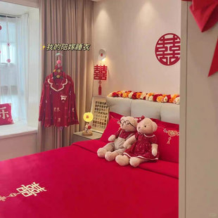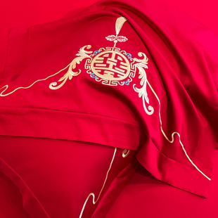 高级感新款 结婚床上用品四件套纯棉陪嫁新房被套红色喜被婚庆床单