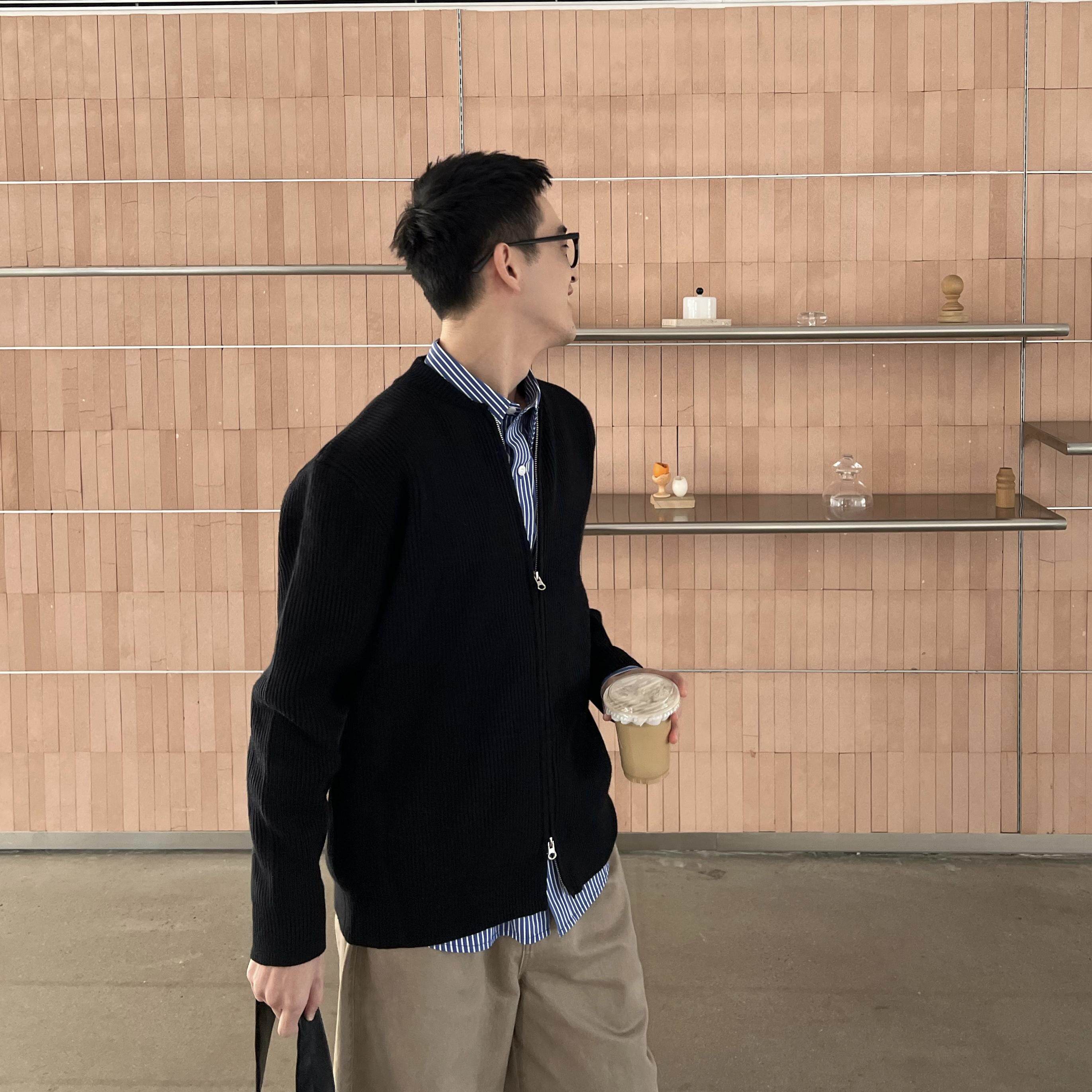 Tian春秋季 男简约休闲宽松长袖 新款 毛衣开衫 拉链外套 韩版 Nick