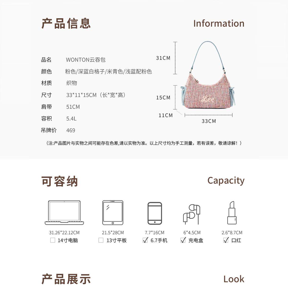 Lee春夏女牛仔帆布云吞包大容量单肩hobo背包通勤上课包托特包