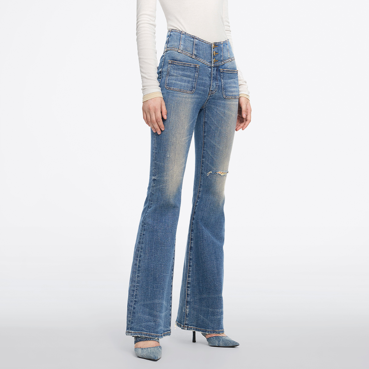 进口牛仔面料 牛仔裤 Miss 新款 女微喇叭广角裤 Sixty2025春季