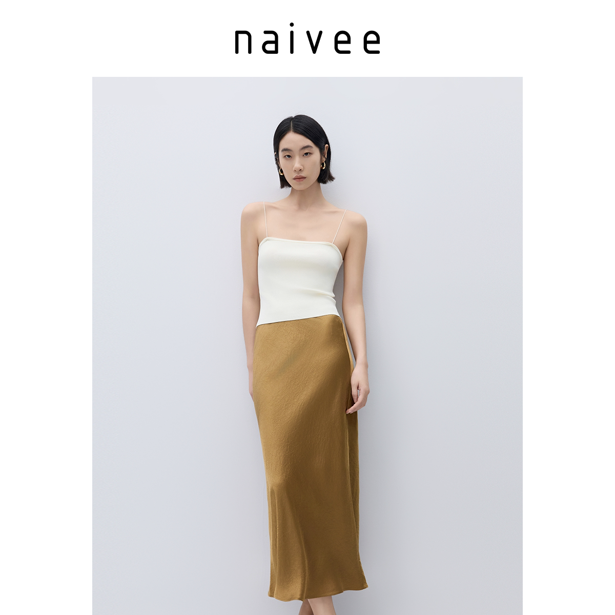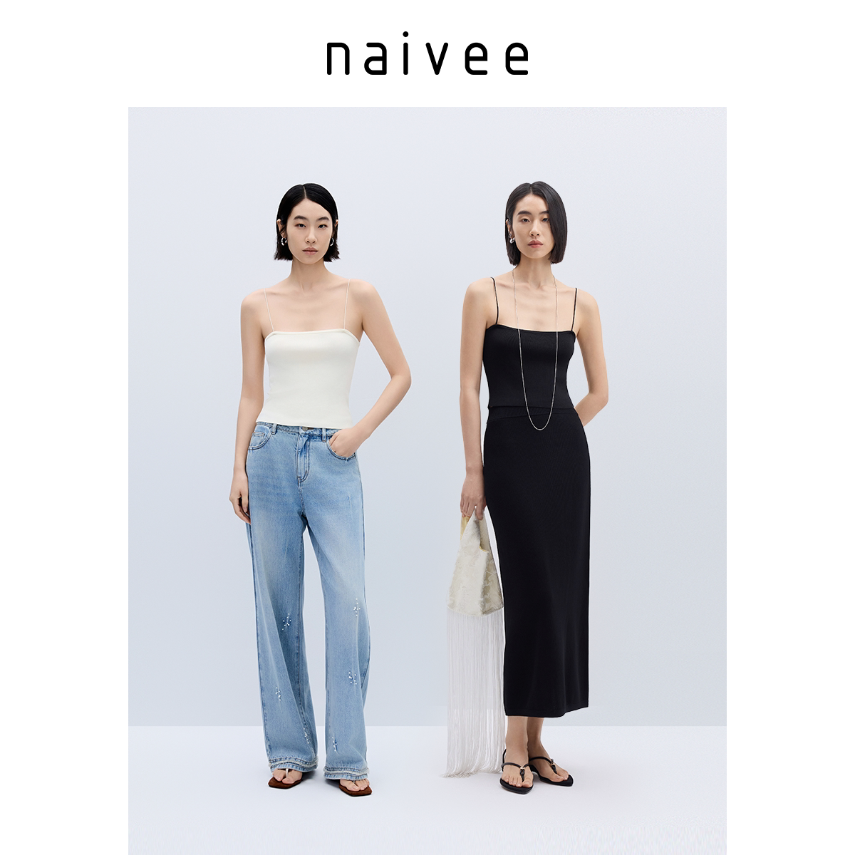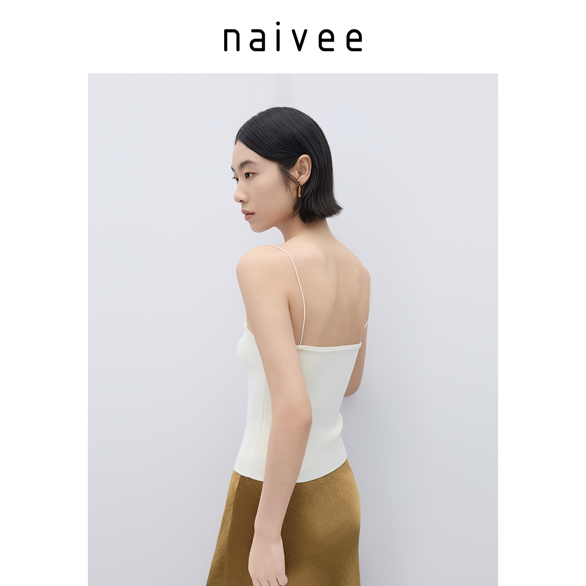 naivee纳薇百搭显瘦细肩带冰麻纱针织吊带打底背心女春新款
