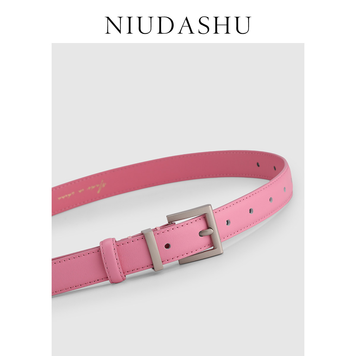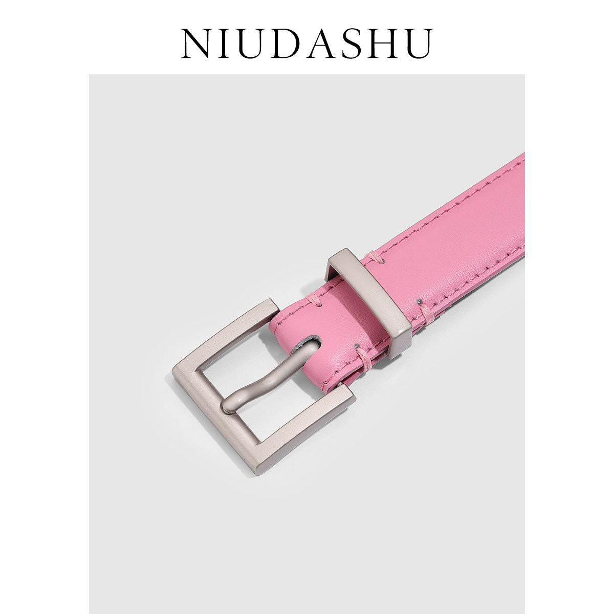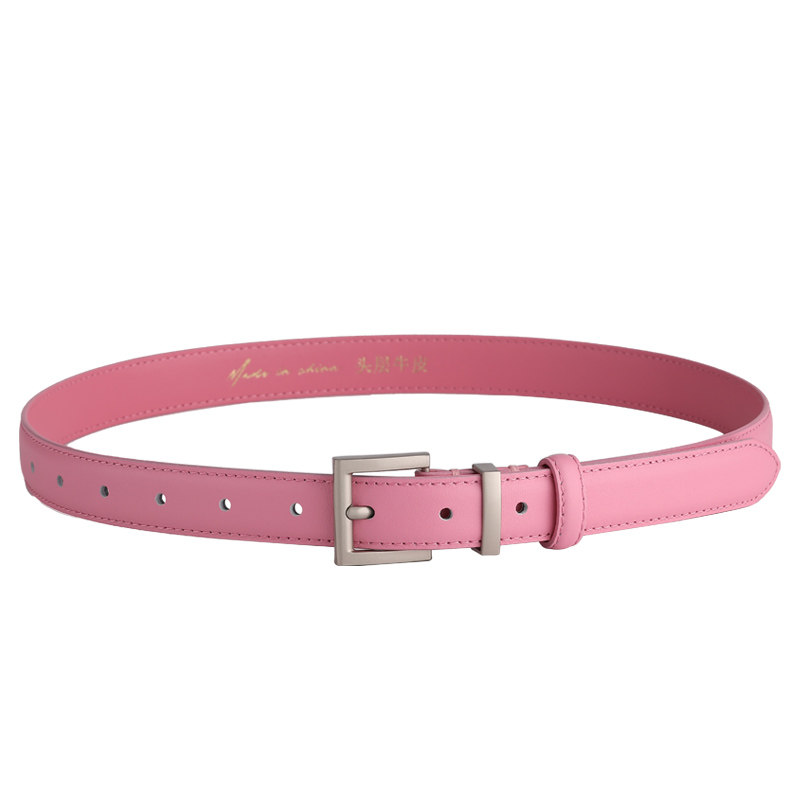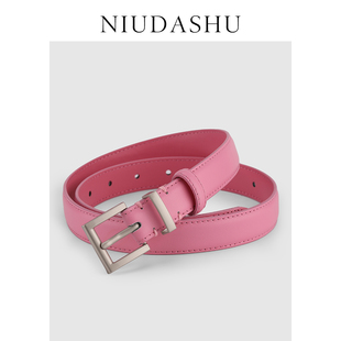 小众玫红色时髦配牛仔裤 饰头层牛皮韩版 腰带女潮 皮带女真皮装 新款
