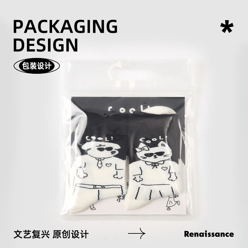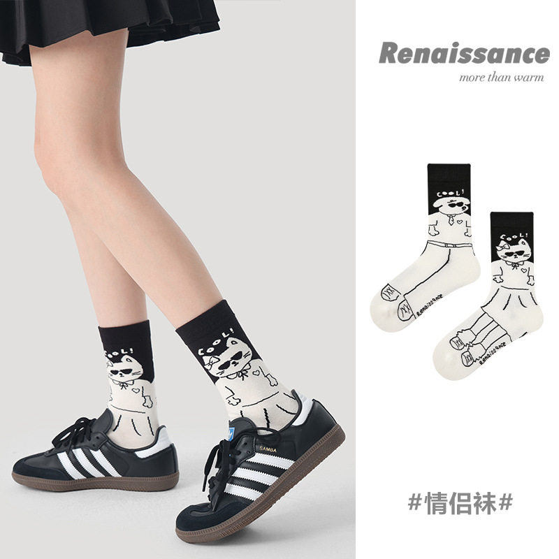 Renaissance创意袜子女夏季 春秋情侣运动棉袜 卡通搞怪中筒袜男士