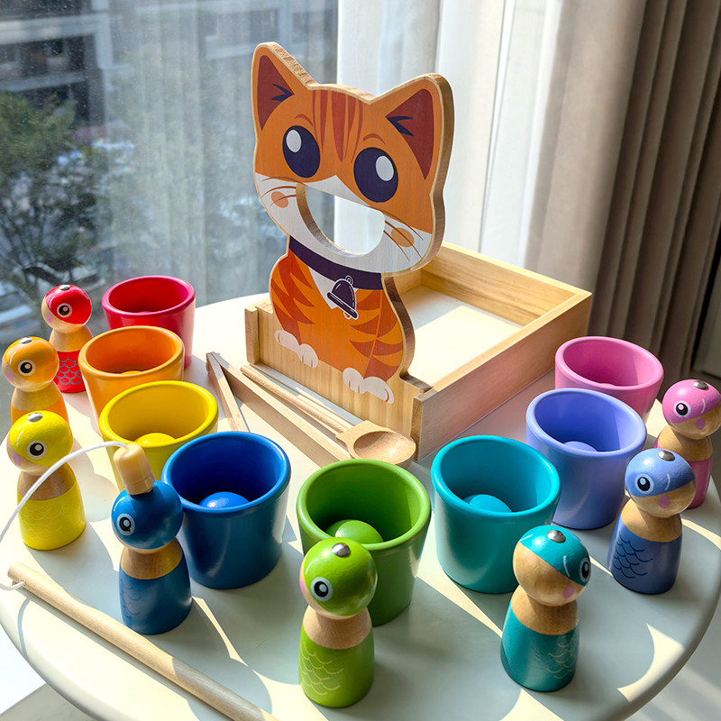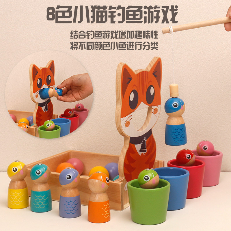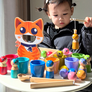 磁性木质小猫儿童钓鱼玩具套装 宝宝早教益智类锻炼手眼协调能力
