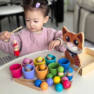 蒙氏早教钓鱼玩具磁吸儿童益智宝宝启蒙颜色分类杯配对认知手眼协