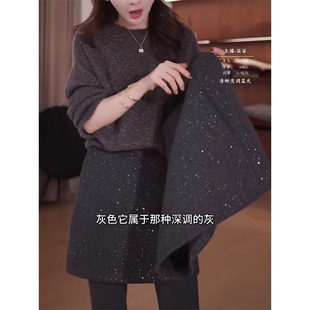 加厚高腰设计显瘦宽松半身裙裤 新款 2025年秋冬季 灰色百搭毛呢裙裤