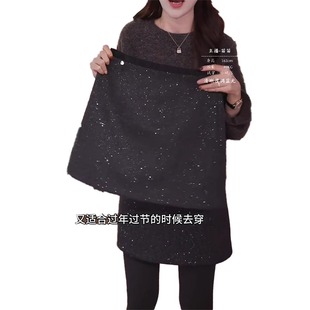 黑色毛呢半身裙女秋冬梨型身材大码 A字裙 胖mm高腰遮胯显瘦中长款