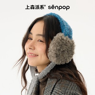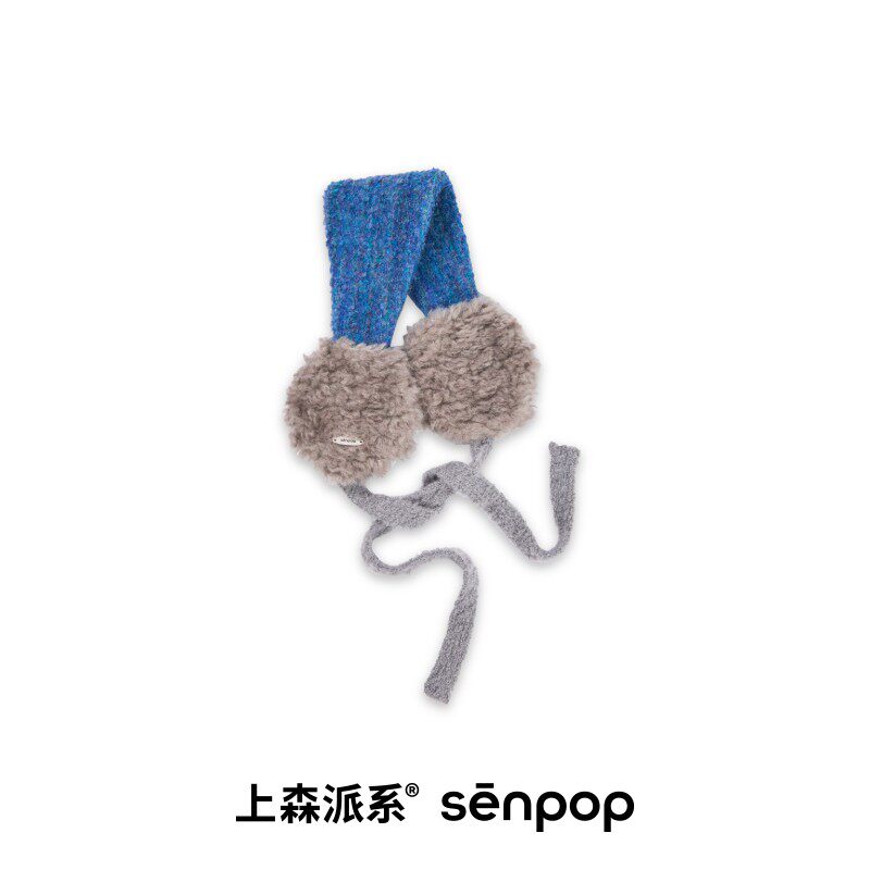 上森羊毛系带耳罩蓝色保暖防风毛绒耳套女冬护耳包 董生活同款