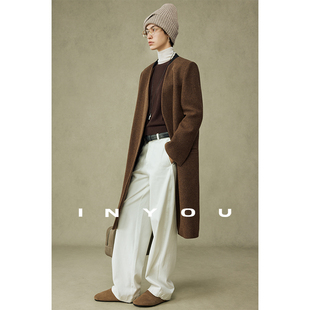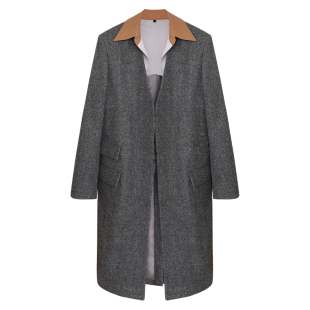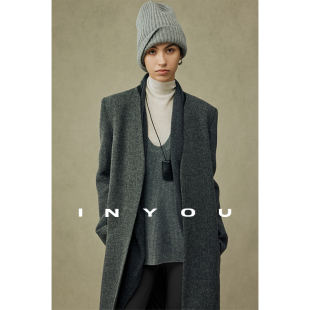 领毛呢大衣 極简ROW风混色两穿衬衫 因由 老钱风设计感羊毛外套长款