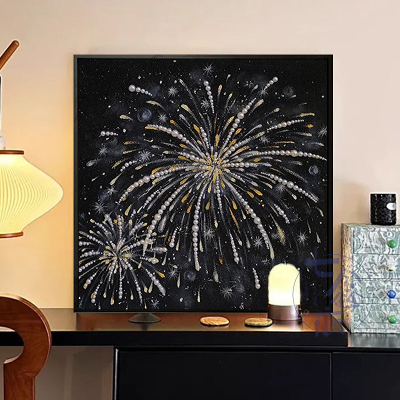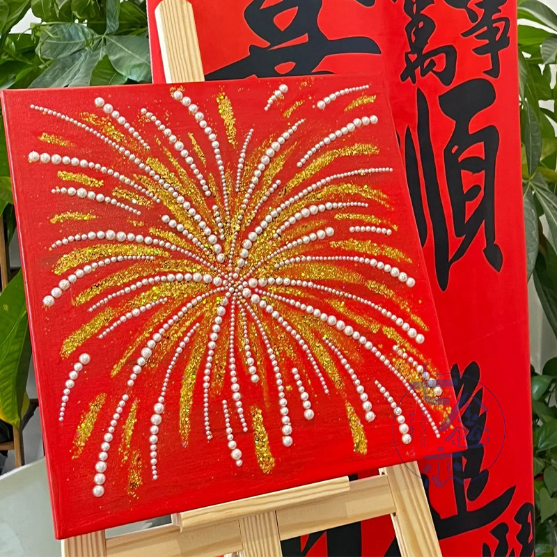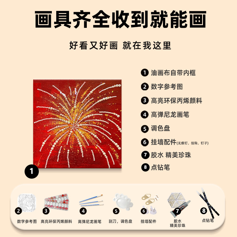 高级感烟花珍珠画数字油画diy填充色手工绘材料包新年丙烯装 饰画