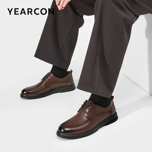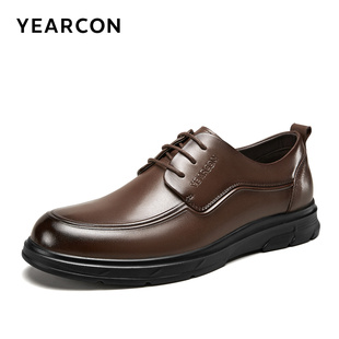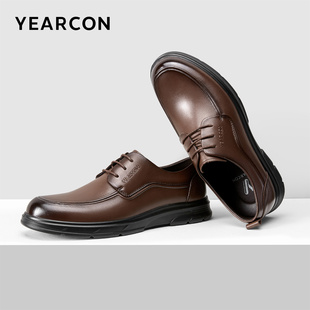 2025秋冬新款 男鞋 商务鞋 增高皮鞋 子 软底休闲系带圆头正装 奥康男鞋
