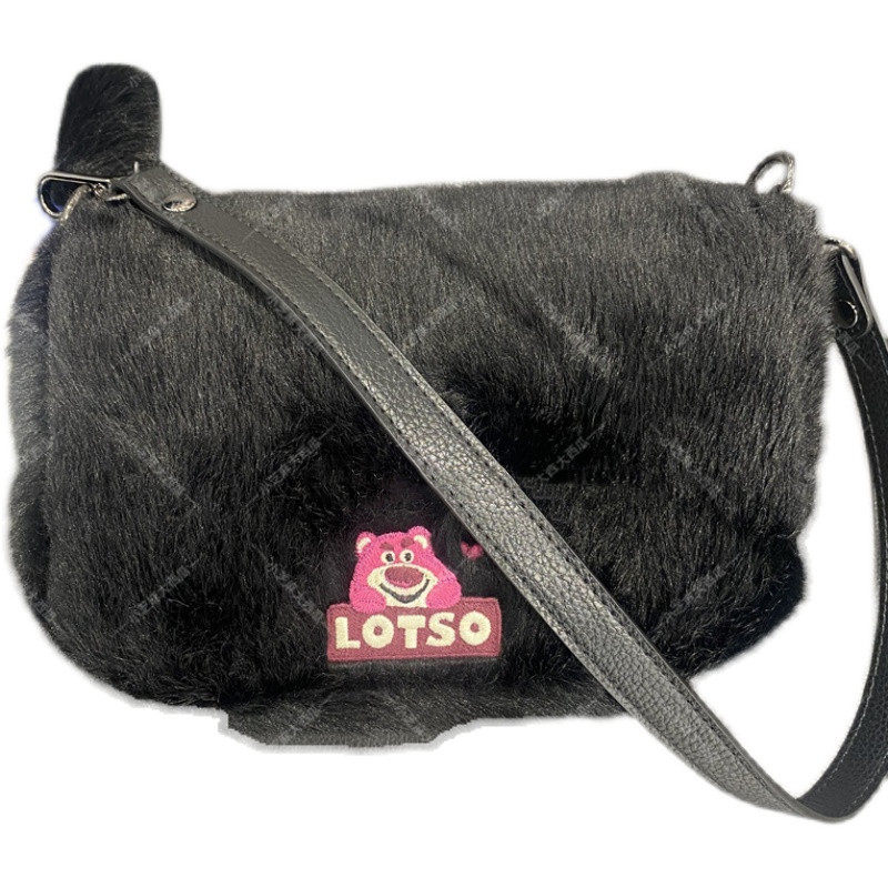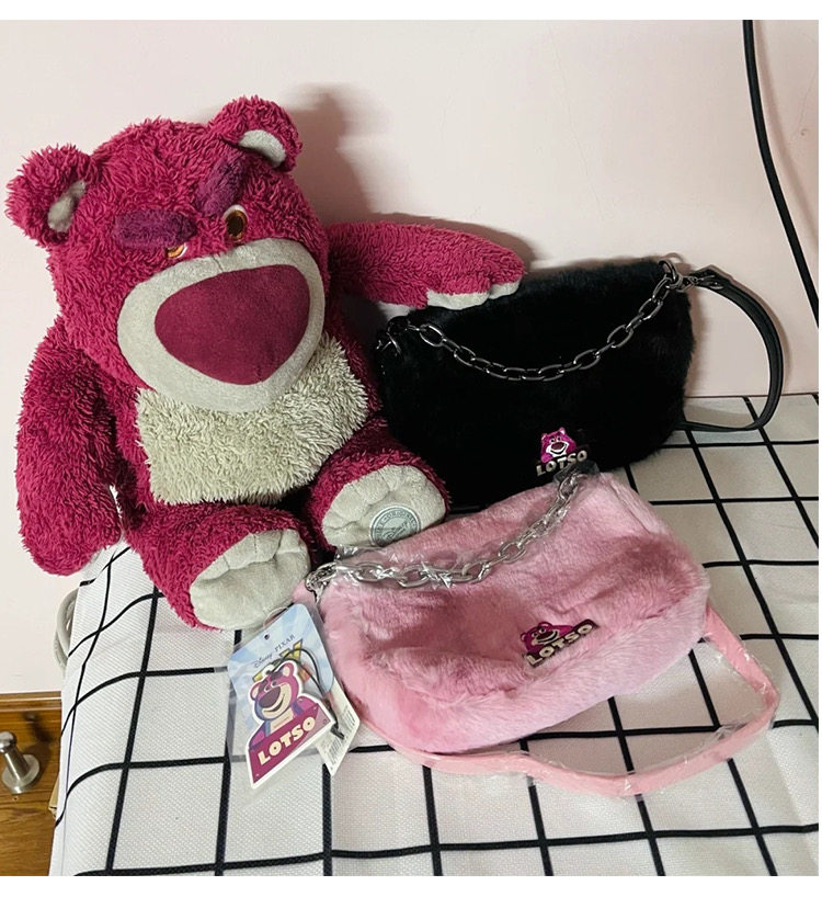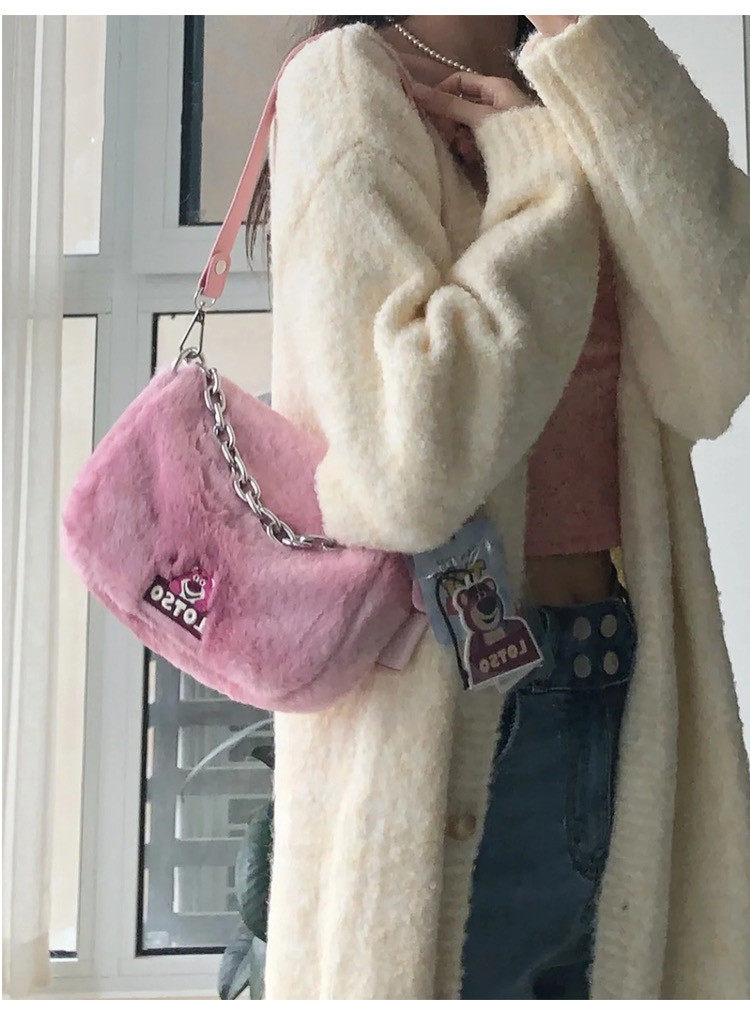 同款 草莓熊包联名粉色2021秋冬链条斜挎羊羔毛毛绒小包ins