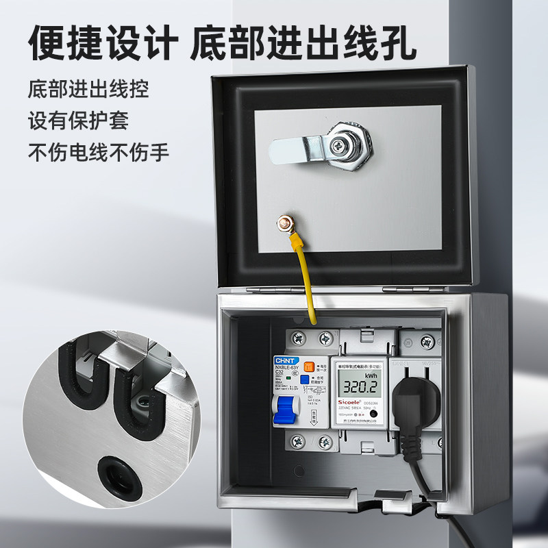 CHAV不锈钢户外防雨水全包插座盒漏电保护电动车充电箱室外小电箱