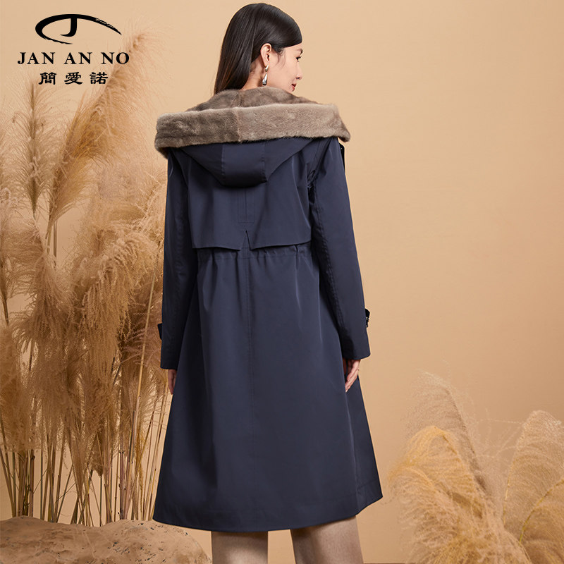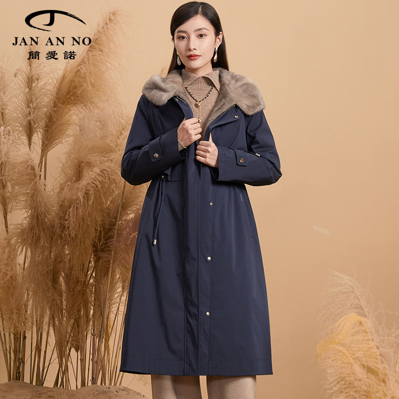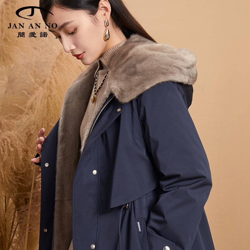 男士 梦特娇冬季 兔毛皮内胆 尼克服皮草外套羽绒服保暖J 水貂毛领