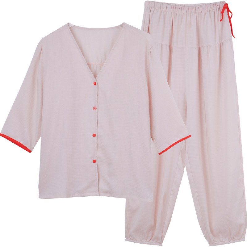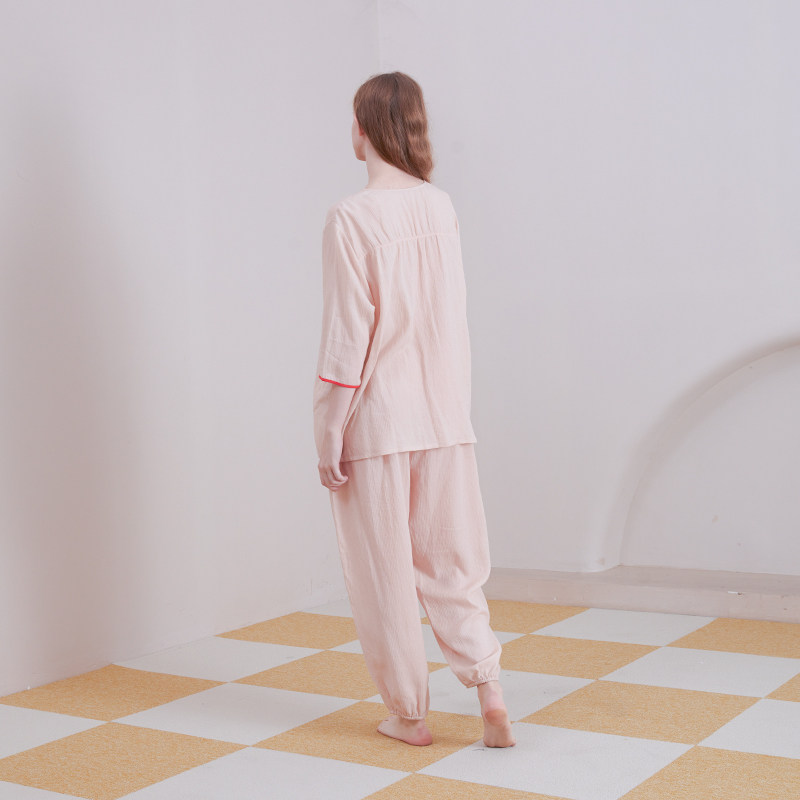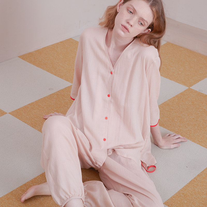 柔软套 纯棉V领甜美粉色薄款 朵朵可可睡衣家居服女2025新款 春夏季