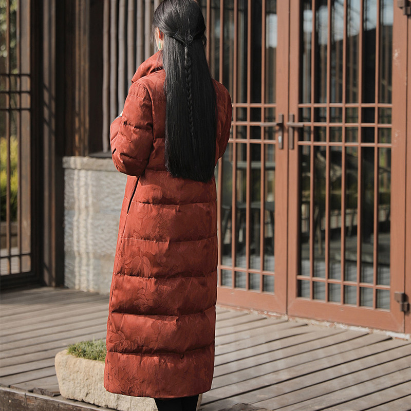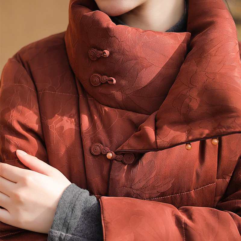 外套立领冬 长袖 花间梦事 重缎真丝香云纱羽绒服95白鹅绒加厚中式