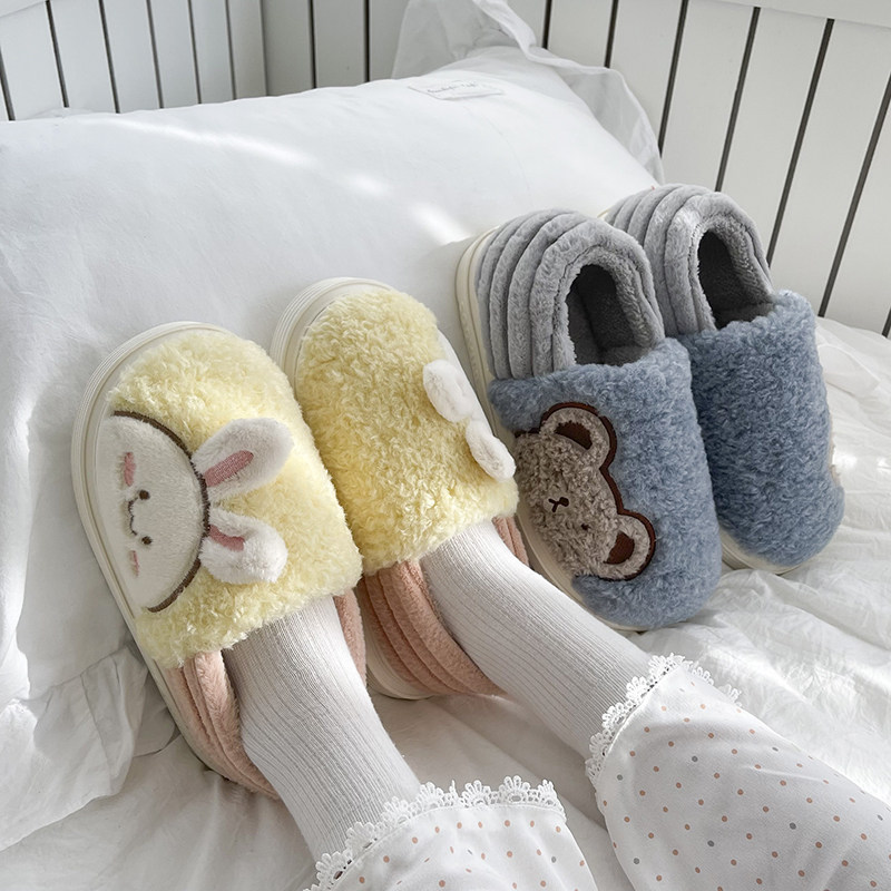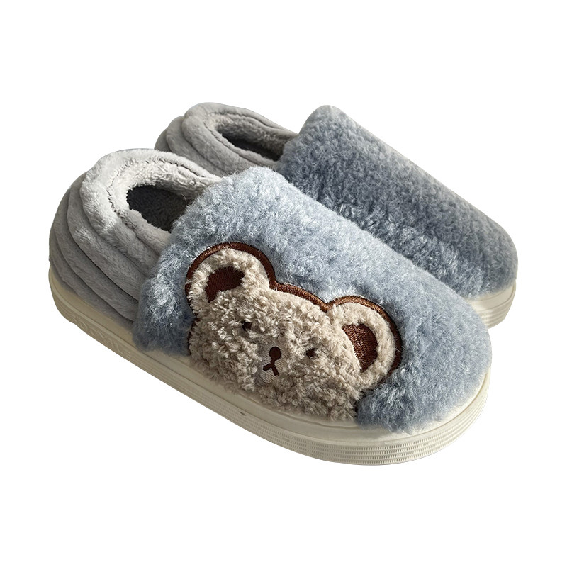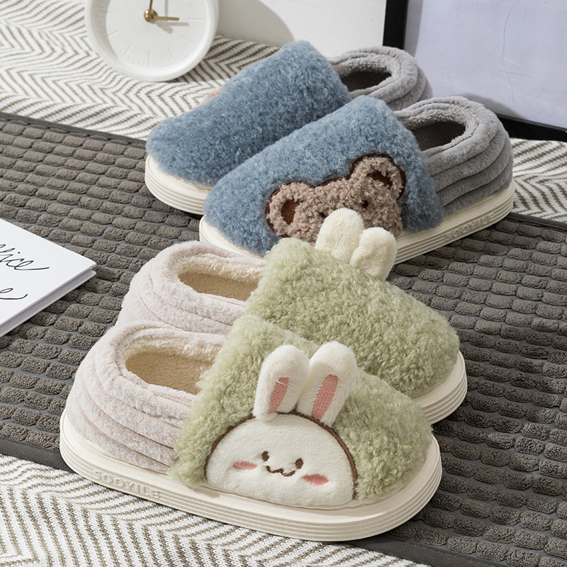 可爱学生宿舍厚底加绒保暖情侣家居室内棉鞋 冬季 女 包跟棉拖鞋 男士