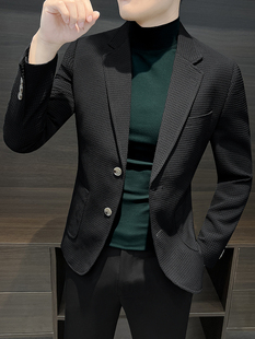 高级感黑色满天星西装 流行链条小西服上衣 外套男垫肩帅气百搭韩版