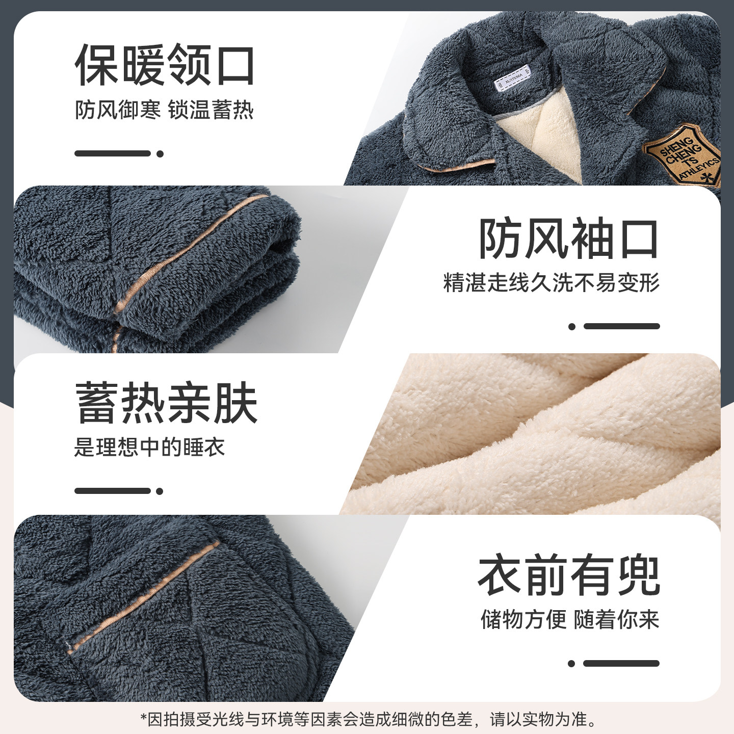 男士 棉袄加厚加绒保暖家居服套装 海岛绒三层夹棉睡衣男秋冬款 冬季