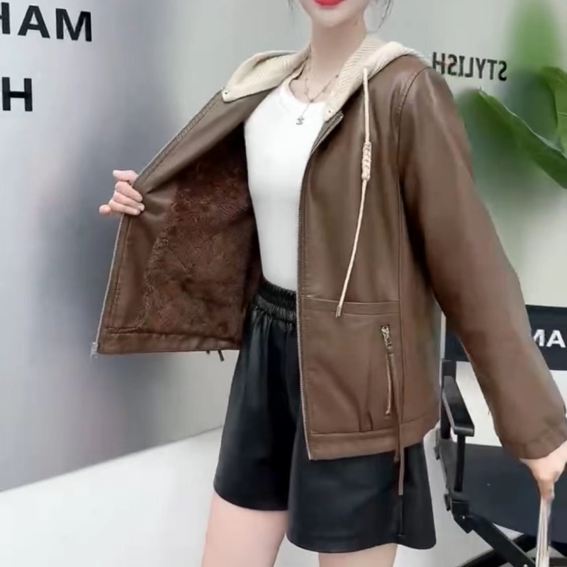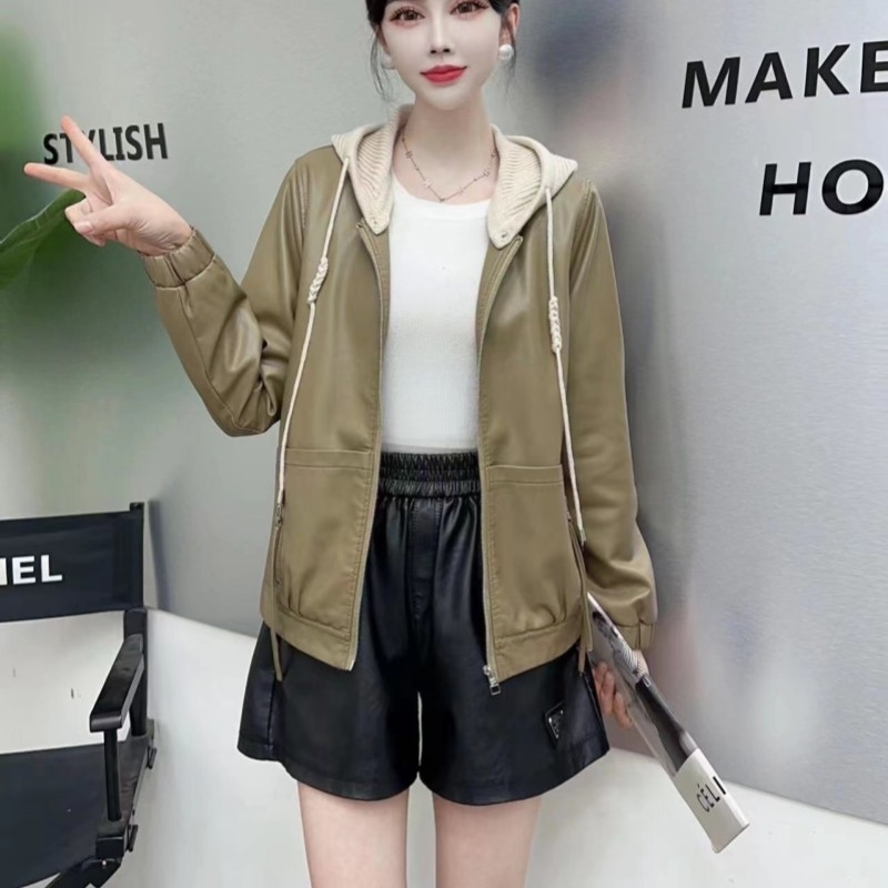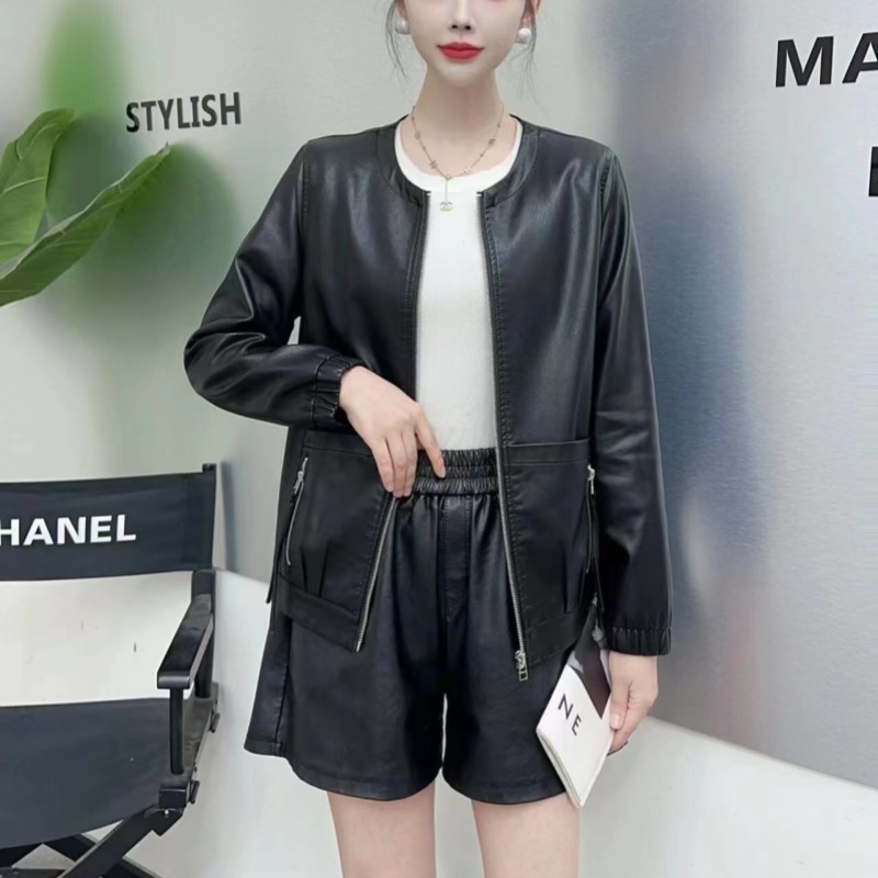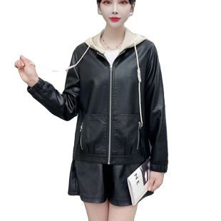 设计感下摆抽绳皮衣外套两色宽松上衣女秋款 aaaaxbbb 布鲁尔可可