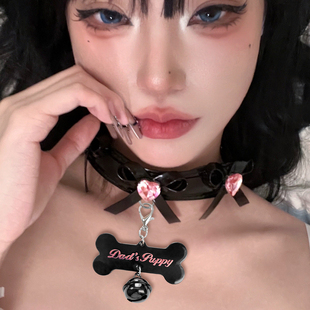 定制爱心水钻蝴蝶结项圈女m小狗puppy骨头刻字铃铛choker牵引颈带