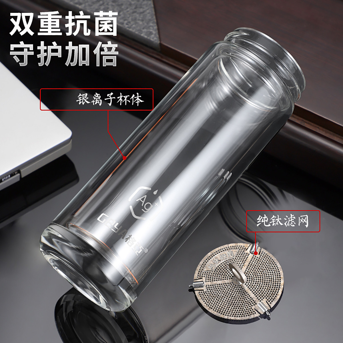 大容量双层玻璃杯男士 防爆耐热微保温家用加厚泡茶杯水杯定制刻字