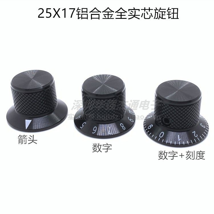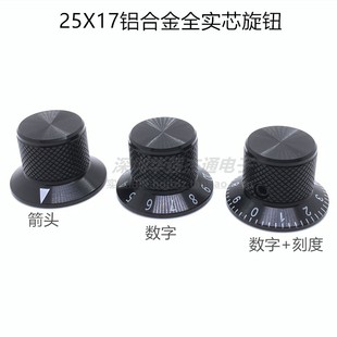 全铝合金实芯草帽型25X17带箭头数字刻度电位器开关盖帽旋钮6mm孔