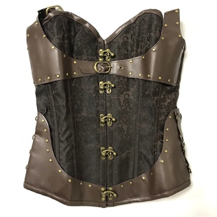 朋克蒸气显瘦暗黑风金属扣收腰挂脖钢骨宫廷哥特式 塑身衣胸衣