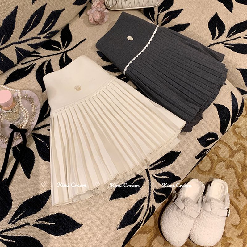 百褶裙女2025新款 胖mm显瘦a字小个子春秋半身裙 短裙高腰松紧大码