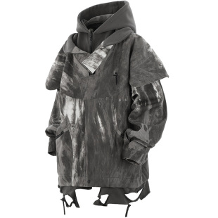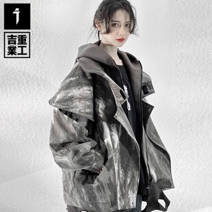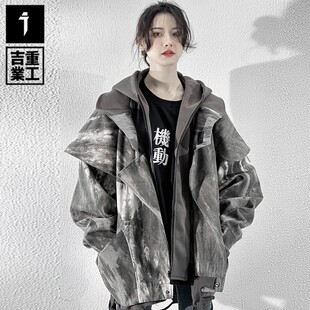 吉业重工原创国潮废土风扎染迷彩冲锋衣外套男女休闲夹克加厚棉服