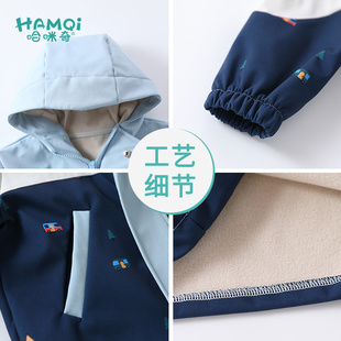 男童加绒外套秋冬新款 儿童摇粒绒风衣防风防水小童宝宝冲锋衣童装