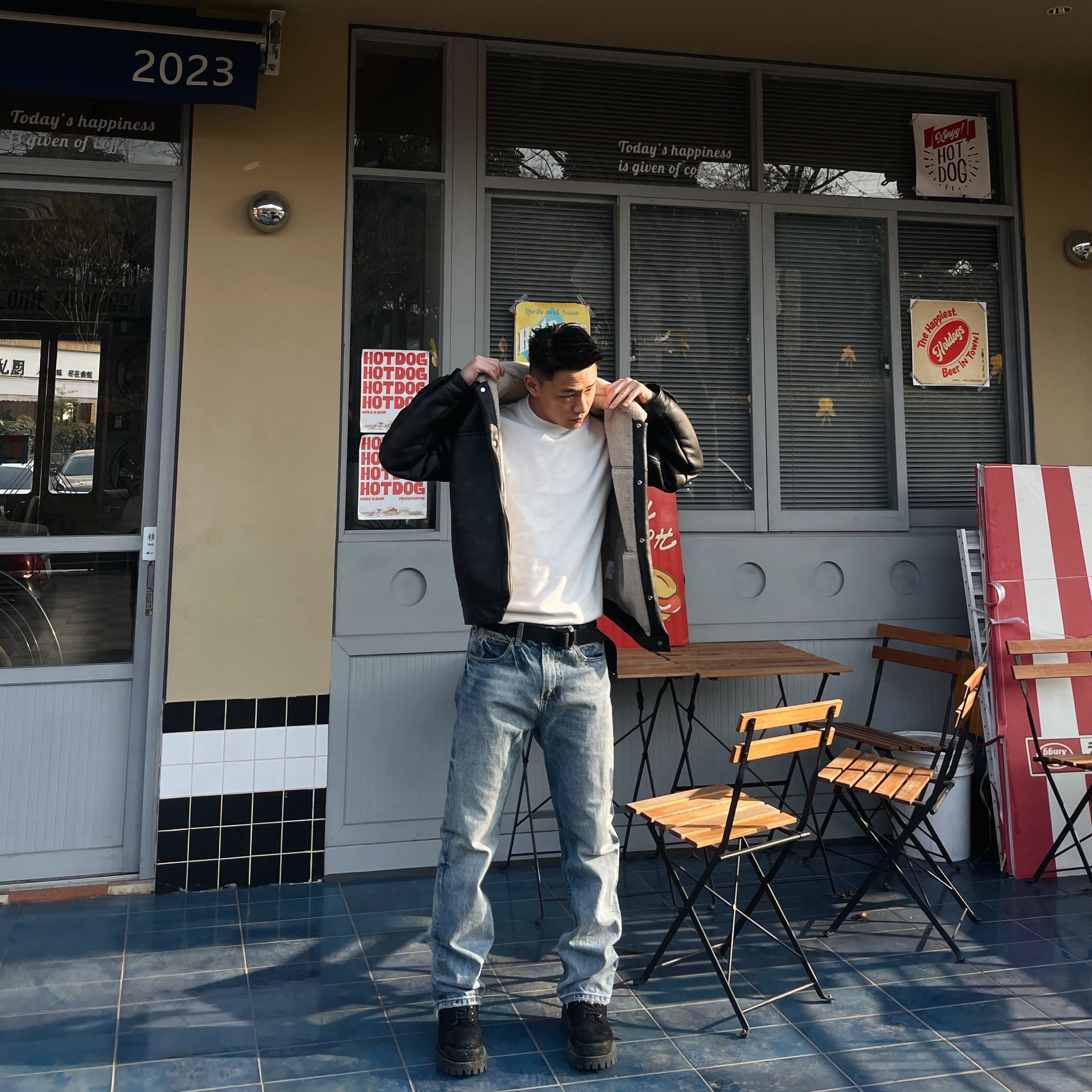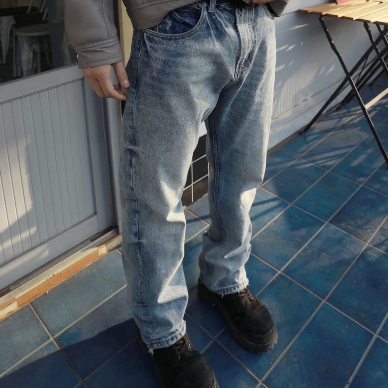 男美式 子弯刀裤 高街vibe窄版 显瘦裤 直筒修身 水泥烟灰色微喇牛仔裤