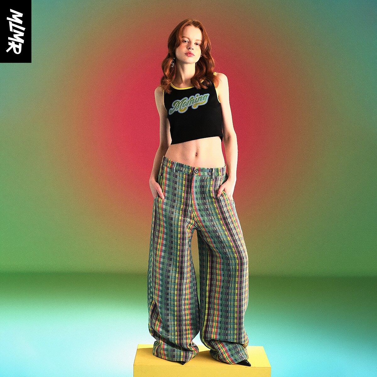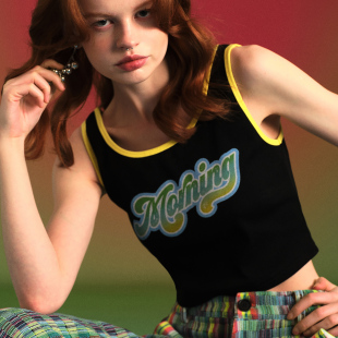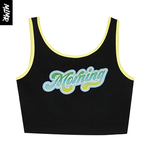 MLMR秋冬字母印花撞色修身 背心吊带上衣内搭U领露脐酷潮 短款