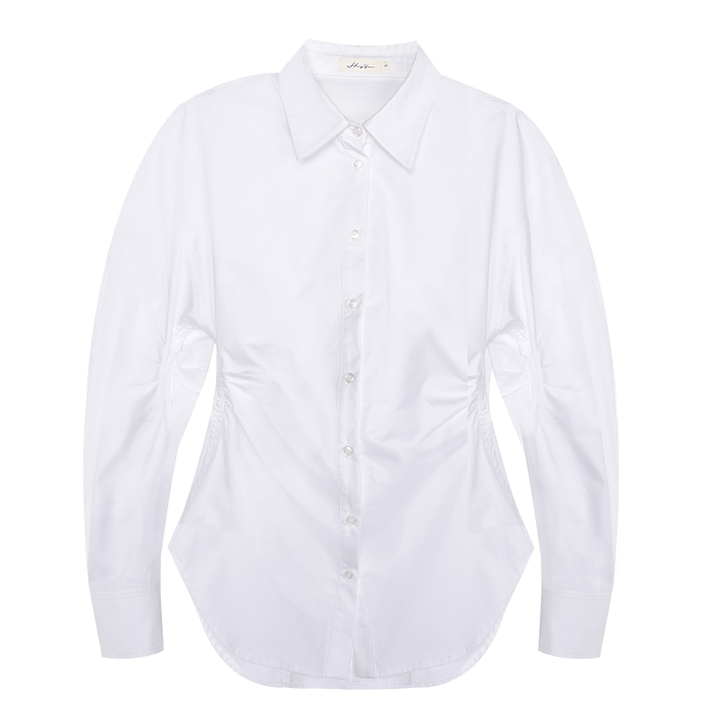 HU白色收腰显瘦长袖 修身 衬衫 新款 衬衣 女设计感小众2025秋季 NEVA