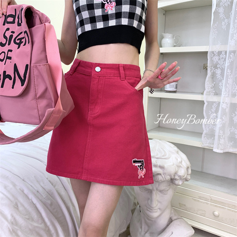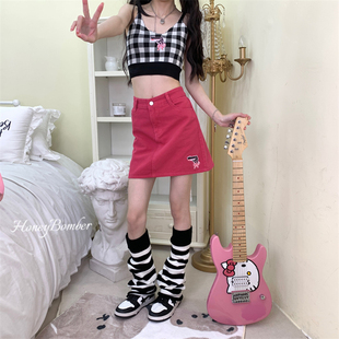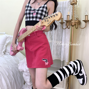 甜心轰炸机 多巴胺穿搭y2k少女甜妹粉色高腰显瘦A字半身裙短裙子