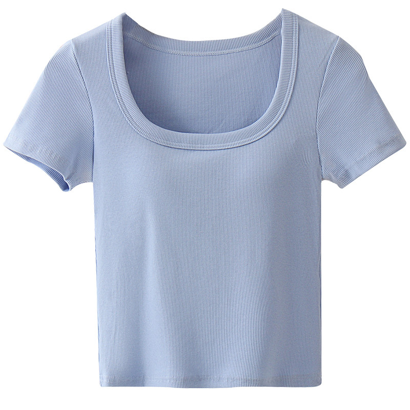 瑜伽打底可外穿 家居半袖 女夏带胸垫方领纯色短袖 t恤罩杯一体韩版