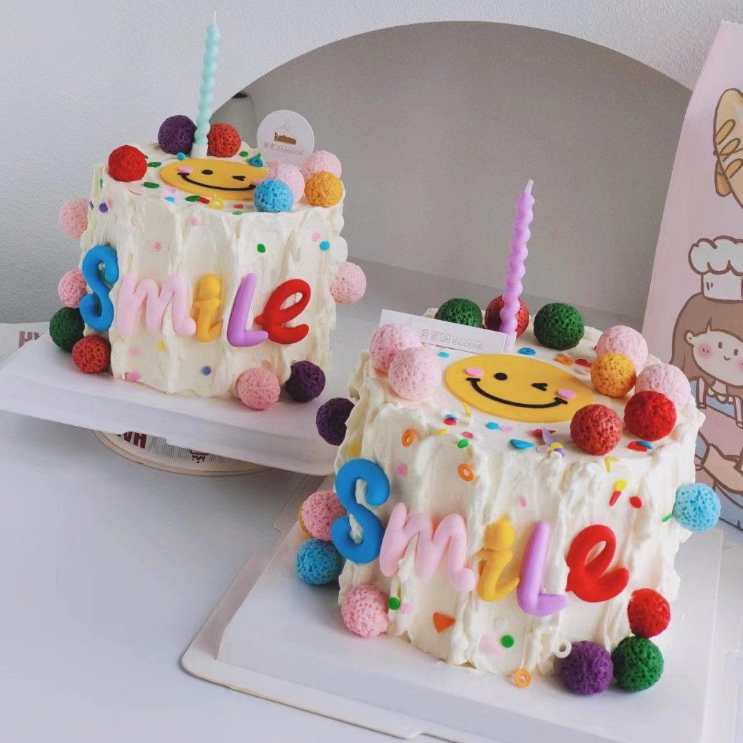 儿童蛋糕装 扮插件 饰软胶笑脸smile摆件网红多巴胺彩色系ins生日装