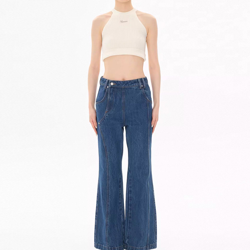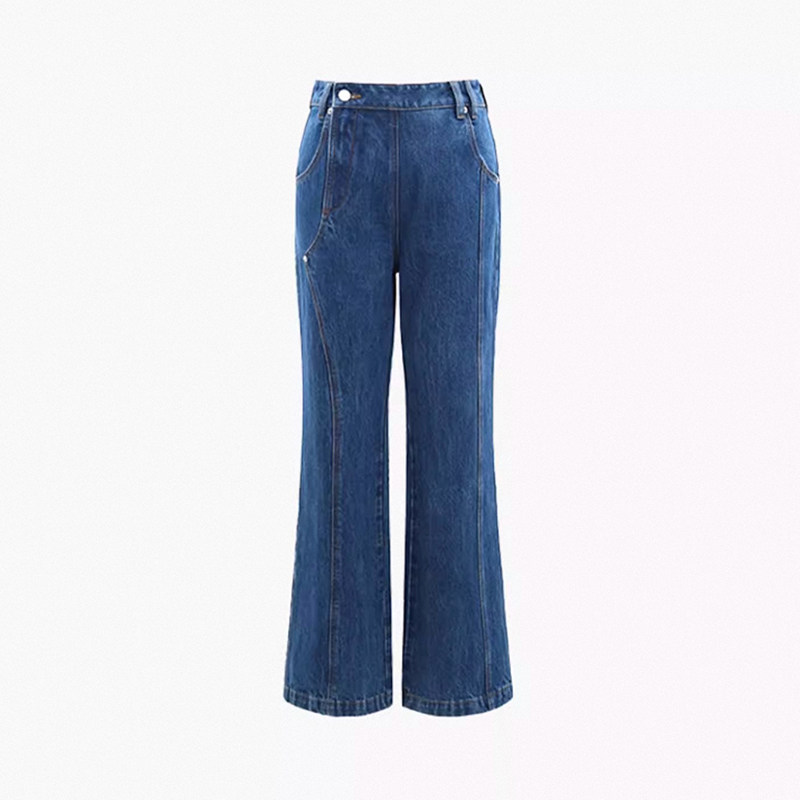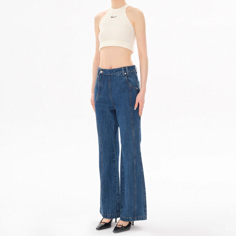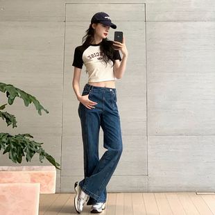 加绒休闲高腰微喇叭牛仔长裤 修身 复古美式 LILY2025秋冬小个子女款