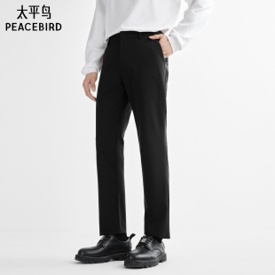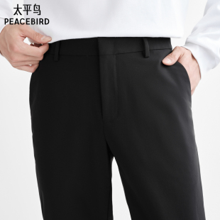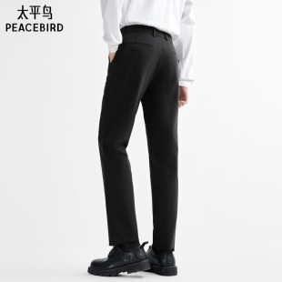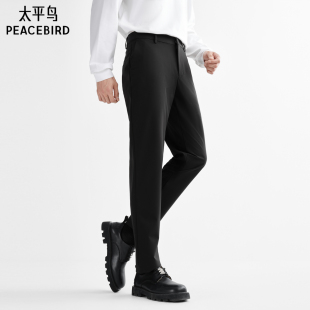 四面弹 春夏直筒商务西裤 太平鸟男装 修身 男黑色抗皱长裤 休闲裤