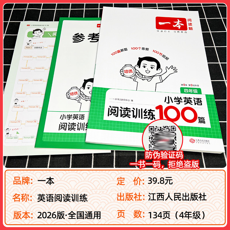 2026版 一本小学英语阅读听力训练100篇三年级四五六年级英语同步阅读理解专项训练书词汇语法练英语语文阅读真题80篇强化练习题