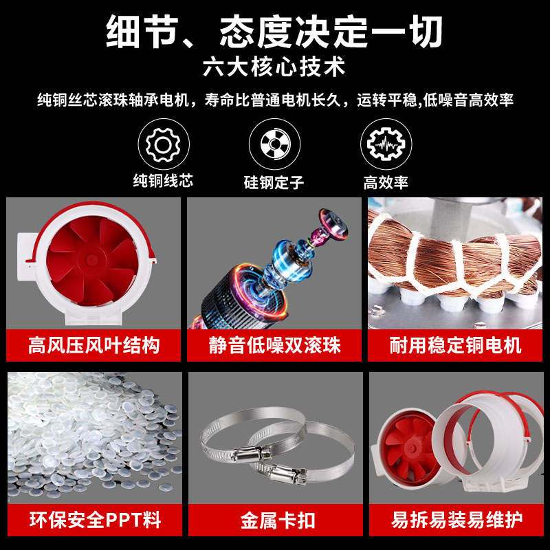 管道抽风机强力静音增压排气扇家用卫生间换气扇厨房油烟机排风机