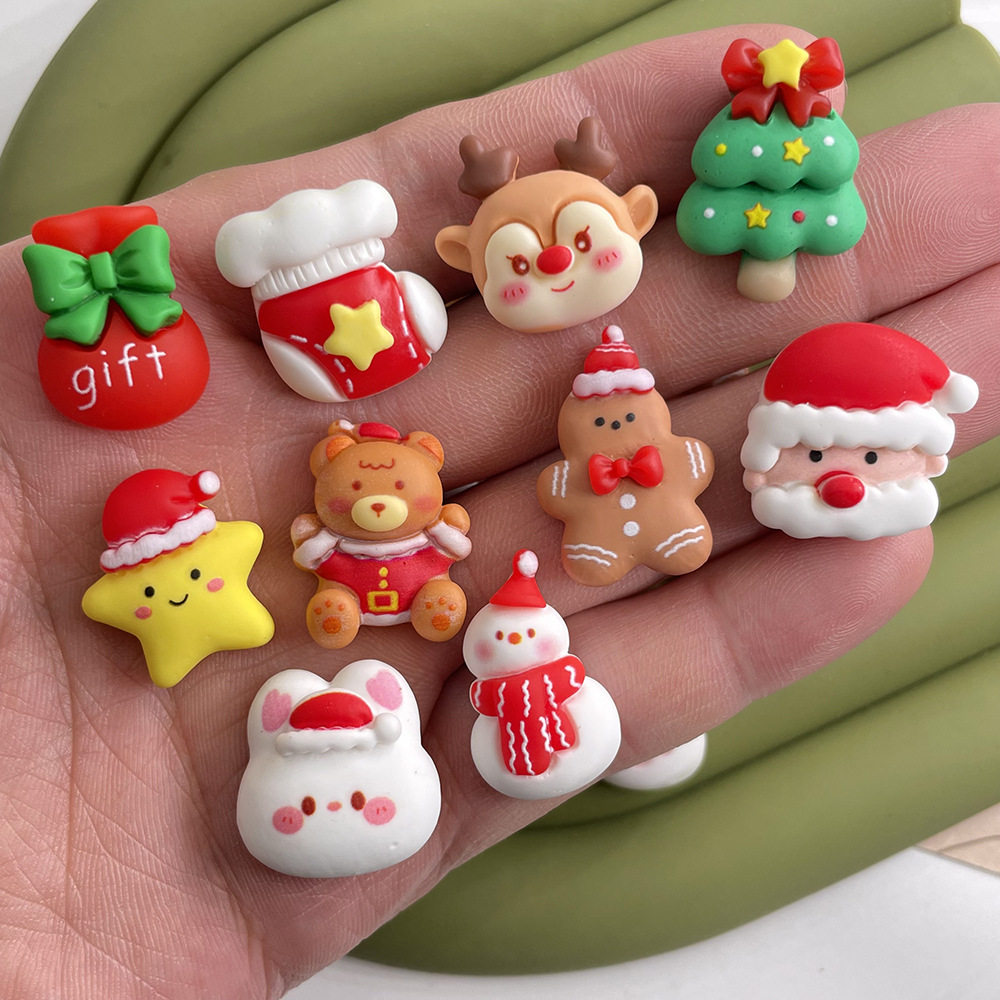 新款 饰配件亮面可爱发夹抓夹可爱DIY奶油胶树脂配件 亮面圣诞节装