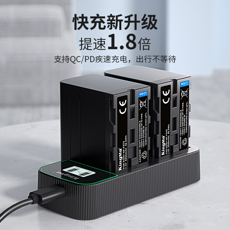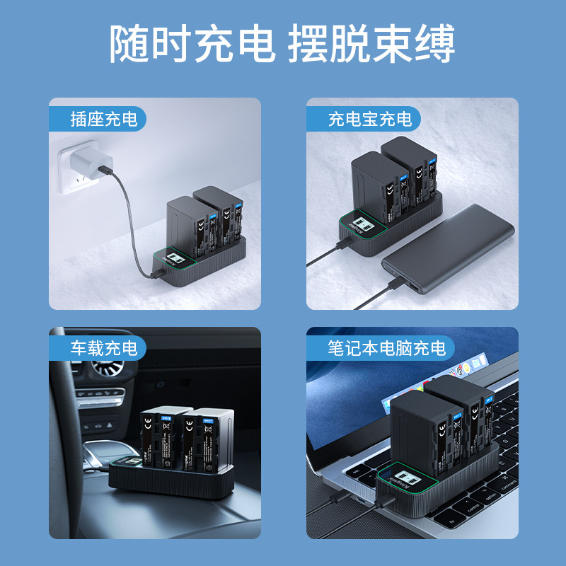 F990 F770 FM50 劲码 c双充QC3.0快充F750 F970 FM500H充电器USB摄照相机电池Type F550补光灯电池 适用索尼NP