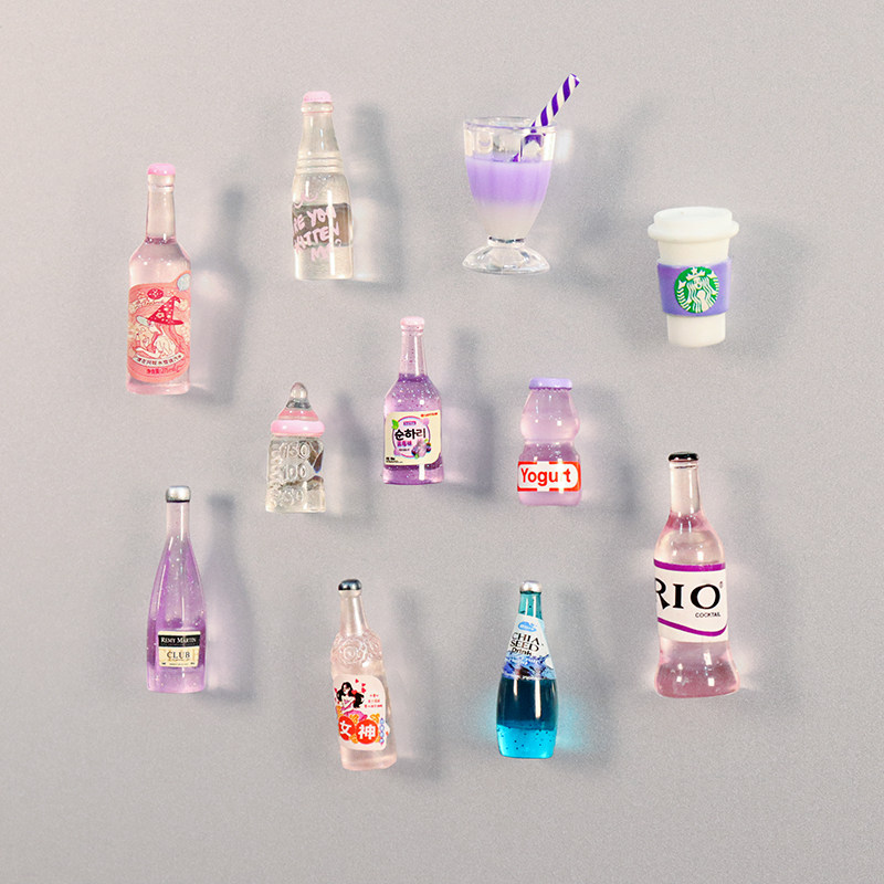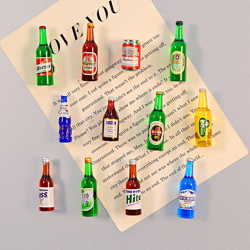 创意立体迷你可爱冰箱贴微缩食玩小饮料啤酒瓶磁贴磁吸装 饰吸铁石