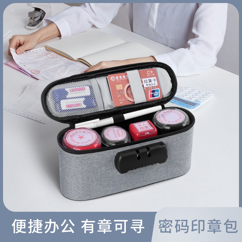 dpbag印章收纳包收纳盒印鉴章带密码 锁公章票据包便携证件收纳袋