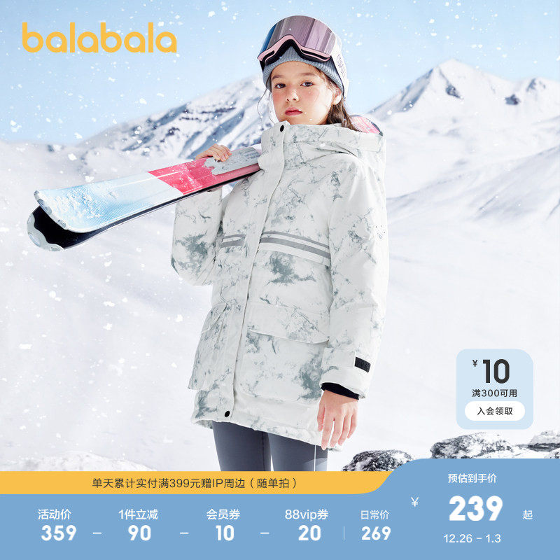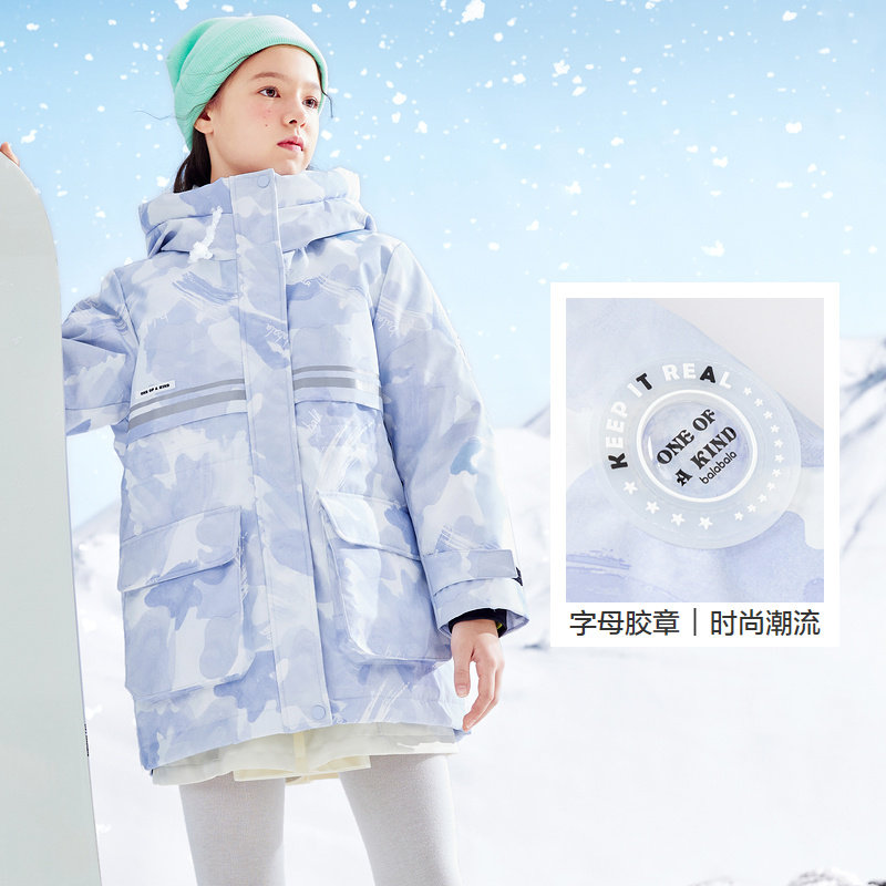 中大童加厚外套男童外套潮 保暖童装 巴拉巴拉女童羽绒服冬装 中长款