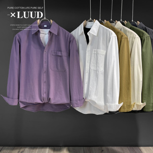 休闲翻领衬衣潮牌百搭工装 灯芯绒长袖 高街美式 外套男秋季 夹克 衬衫