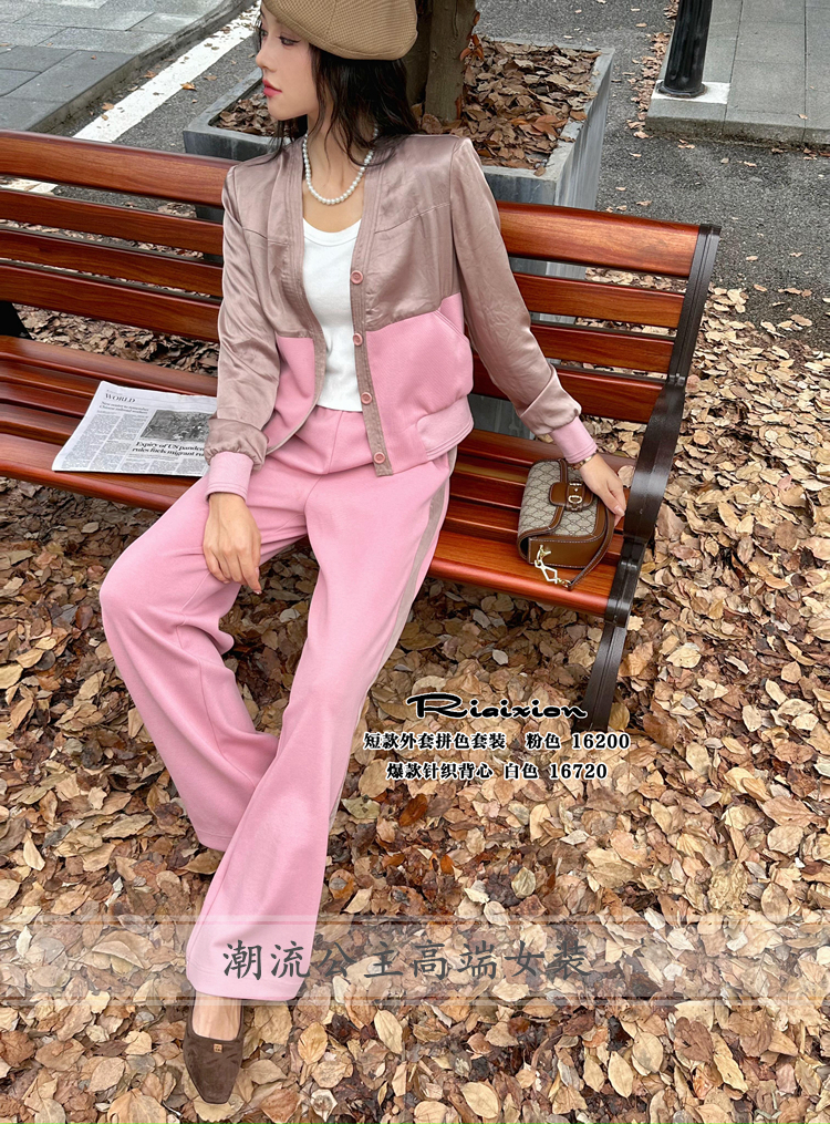 正品 套装 欧洲站2023秋季 16200拼色短外套休闲裤 女装 特价